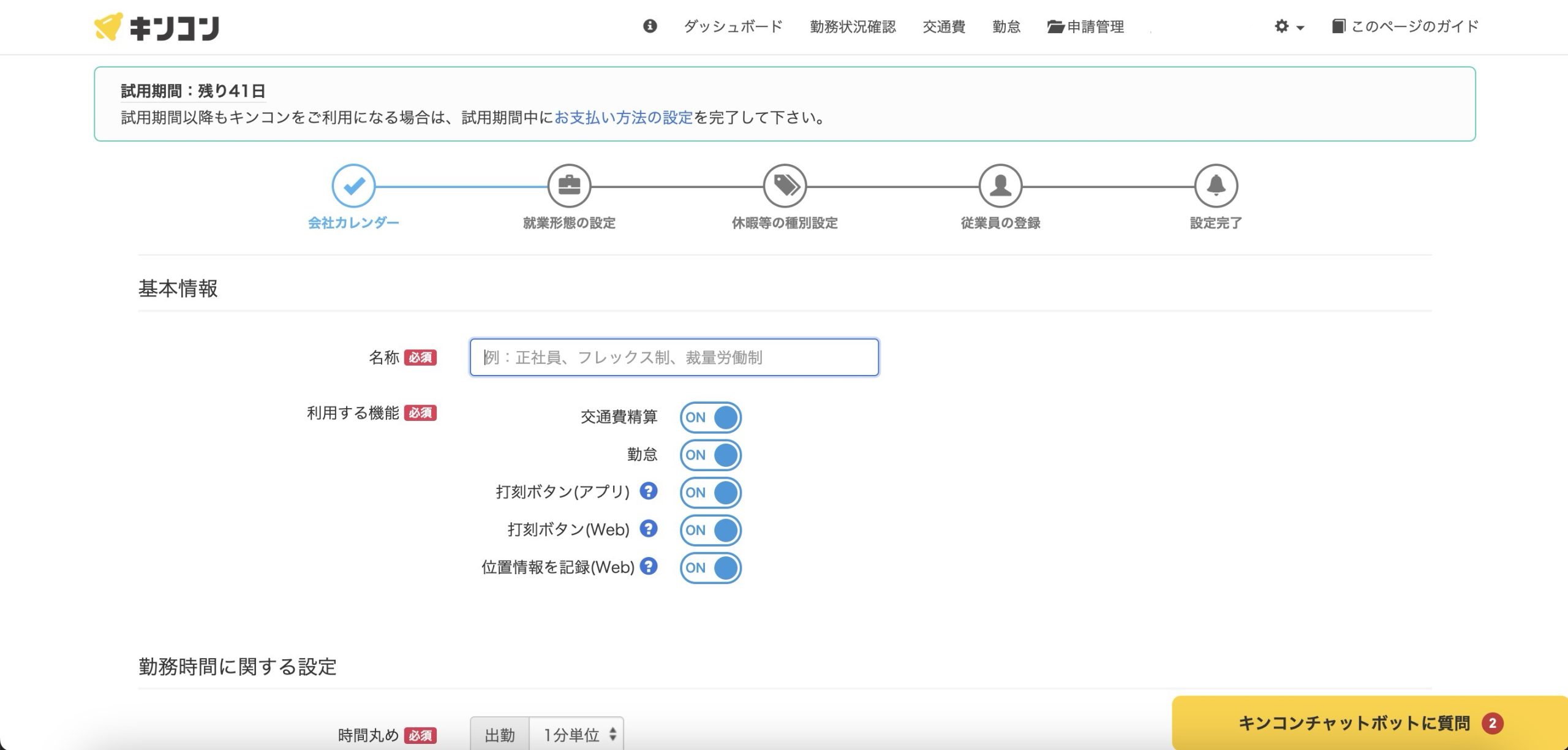 - 勤務時間に関する設定