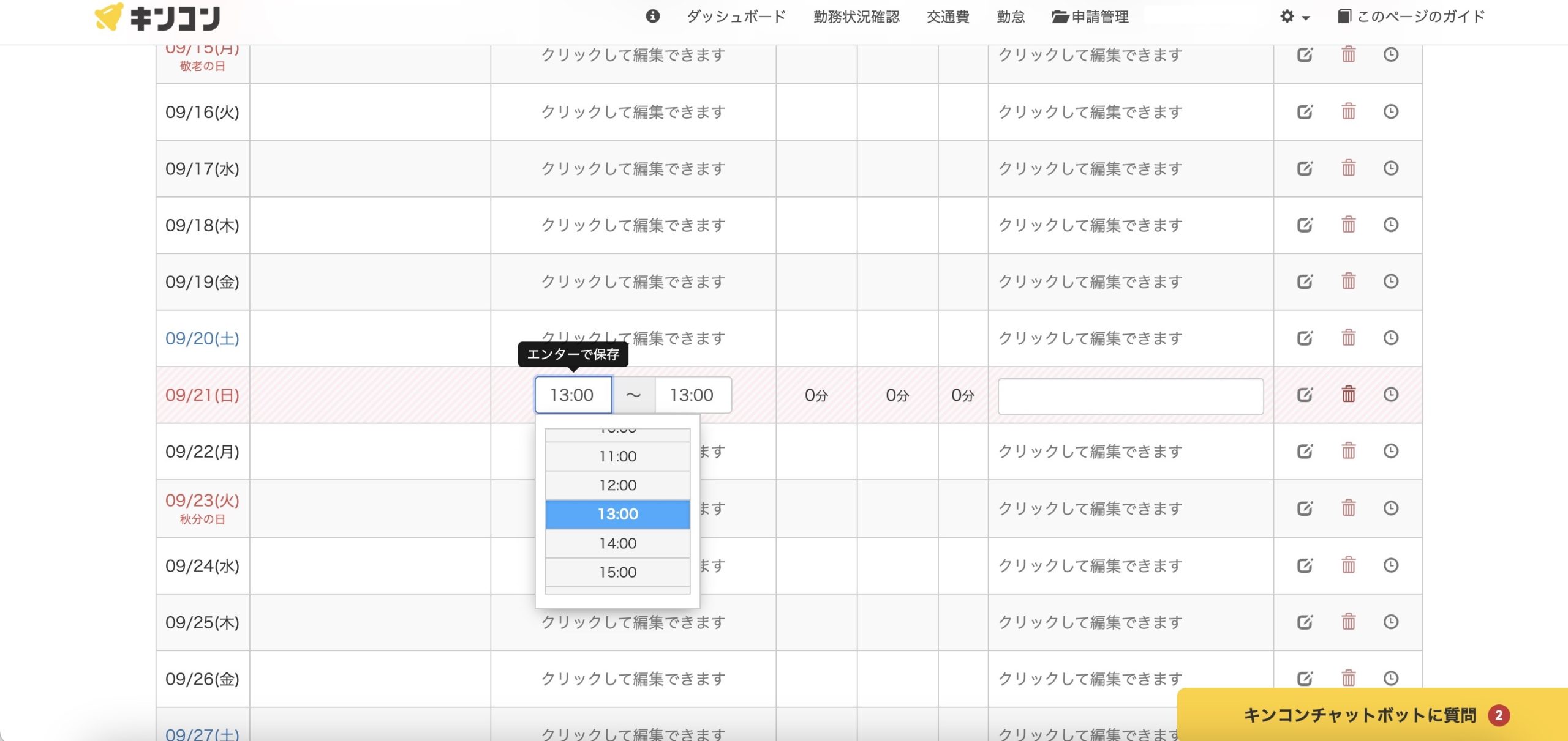 勤怠管理にはキンコンが便利みたいです。