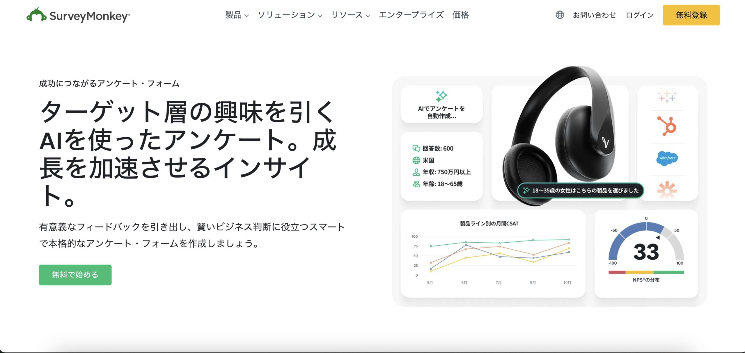 SurveyMonkeyは、簡単に登録でき、豊富な質問形式やデザイン変更が可能で、直感的にアンケートを作成できます。